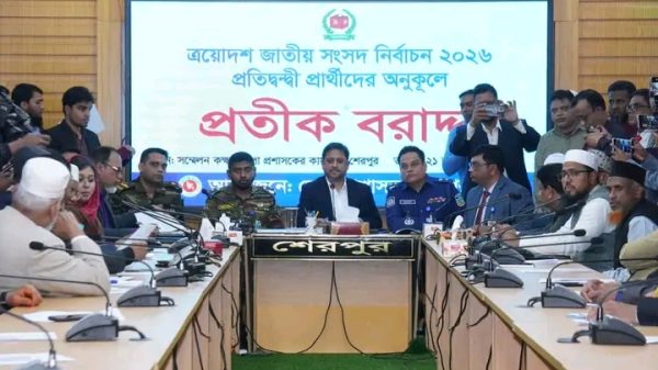 আসন্ন ত্রয়োদশ জাতীয় সংসদ নির্বাচনে শেরপুরের ৩টি নির্বাচনী আসনের বৈধ প্রার্থীদের মাঝে প্রতীক বরাদ্দ করা হয়েছে। ২১ জানুয়ারি বুধবার দুপুরে জেলা রিটার্নিং কর্মকর্তার কার্যালয়ে বিভিন্ন দলীয় ও স্বতন্ত্র প্রার্থীদের ...বিস্তারিত পড়ুন