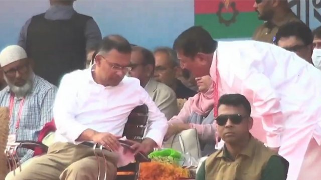 রাজশাহীর নির্বাচনি জনসভায় পৌঁছেছেন বিএনপি চেয়ারম্যান তারেক রহমান। বৃহস্পতিবার (২৯ জানুয়ারি) দুপুর সাড়ে ১২টায় তিনি রাজশাহীর শাহমখদুম বিমানবন্দরে নামেন। জনসভা মঞ্চে যান ১টা ৫১ মিনিটে।
